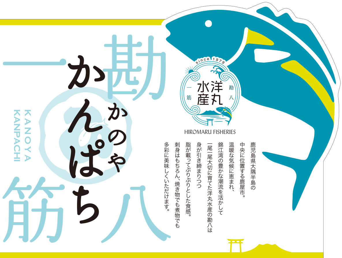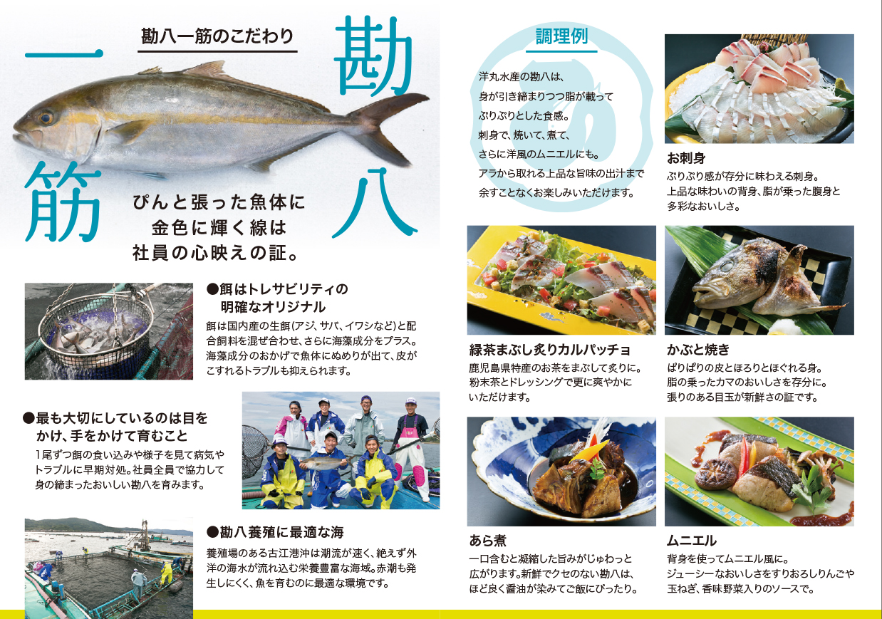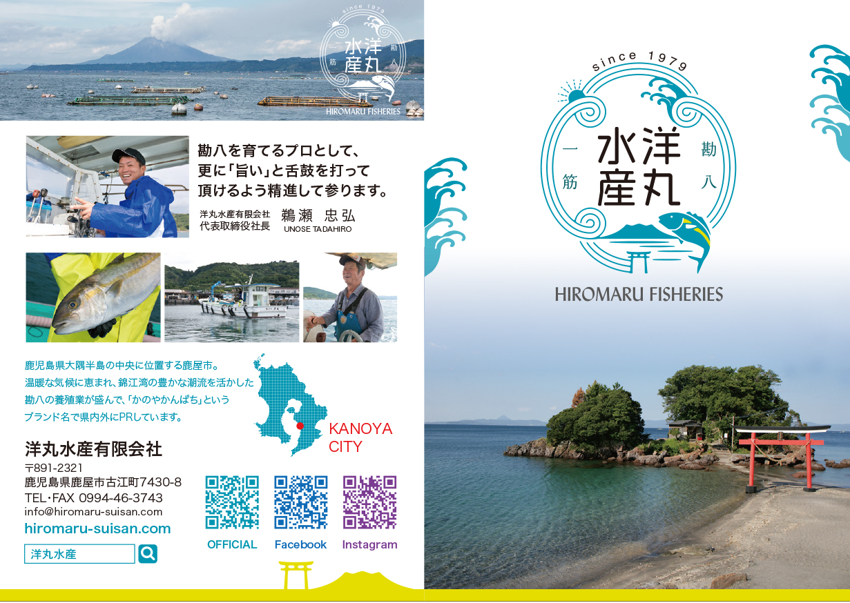 鹿児島県鹿屋市で勘八養殖を行っている洋丸水産(有)様のロゴマーク、リーフレット、商品シール、ホームページ、ショッピングサイト、動画を制作させていただきました。